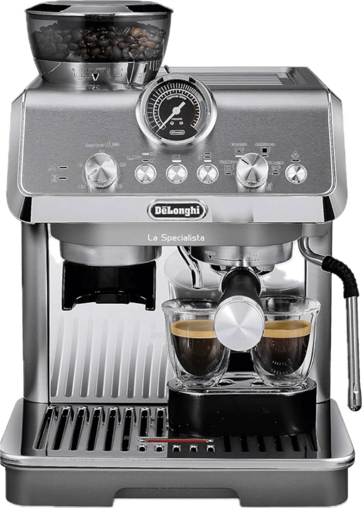 2. De’Longhi La Specialista Arte Evo Espresso Machine with Cold Brew, Manual Milk Frother, Barista Kit for Latte, Cappuccino, Built-in Grinder.
